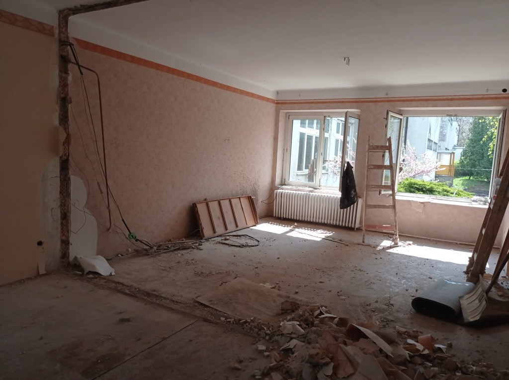 Szerdán elkezdődtek az óvodaépület felújítási munkálatai. Egy válaszfal kibontásával létrejött a leendő napfényes, tágas csoportszoba.